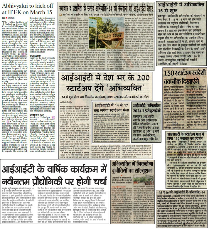 • IIT Kanpur Abhivyakti 2024: आईआईटी कानपुर सतत नवाचार और उद्यमिता के तहत अभिव्यक्ति कार्यक्रम की मेजबानी करेगा