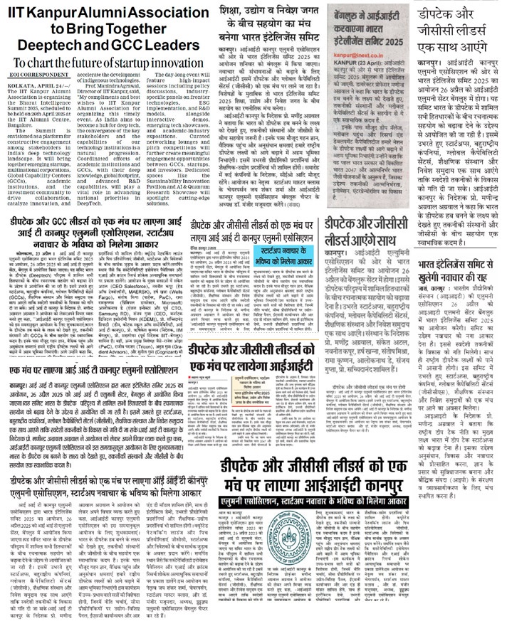 डीपटेक और जीसीसी लीडर्स को एक मंच पर लाएगा आई आई टी कानपुर एलुमनी एसोसिएशन