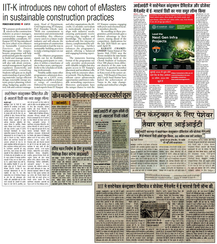 आईआईटी कानपुर ने सस्टेनेबल कंस्ट्रक्शन प्रैक्टिसेज और प्रोजेक्ट मैनेजमेंट में ई-मास्टर्स डिग्री का नया समूह लॉन्च किया