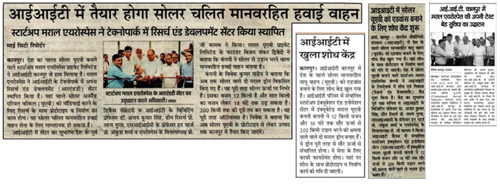1 | 30 August 2024 | आईआईटी में तैयार होगा सोलर चलित मानवरहित हवाई वाहन | Amar Ujala (My City) | Kanpur | 5 | Correspondent |