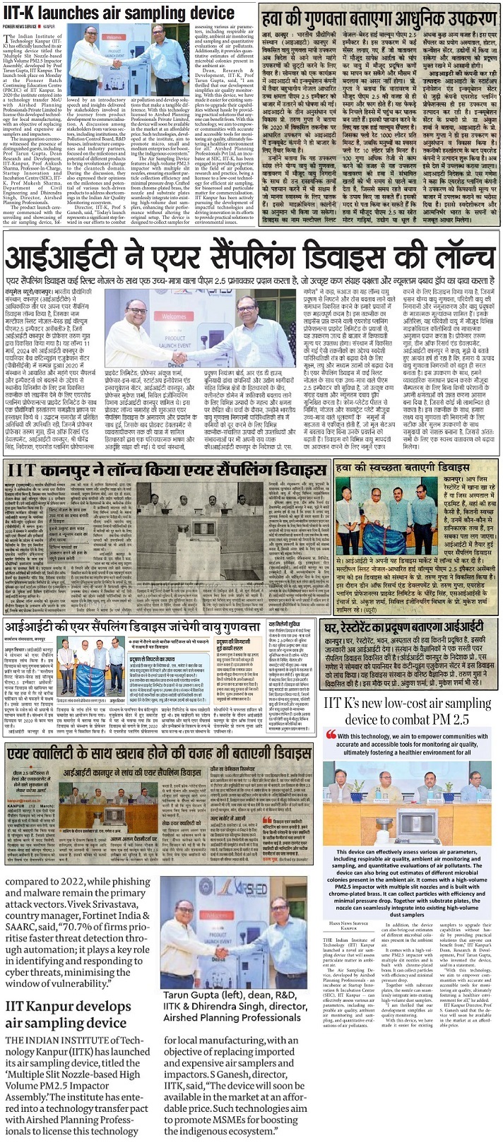 • IIT Kanpur launches air sampling device, contributing to air quality management