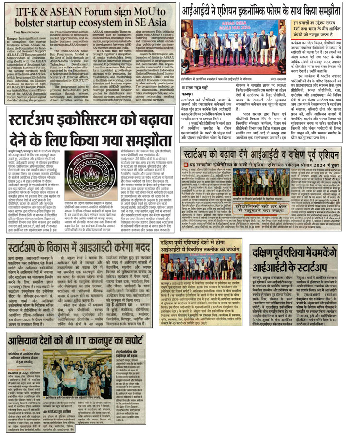 1 | 10 July 2024 | IIT-K & ASEAN Forum sign MoU to bolster startup ecosystem in SE Asia | The Times Of India | Kanpur | 2 | Correspondent |