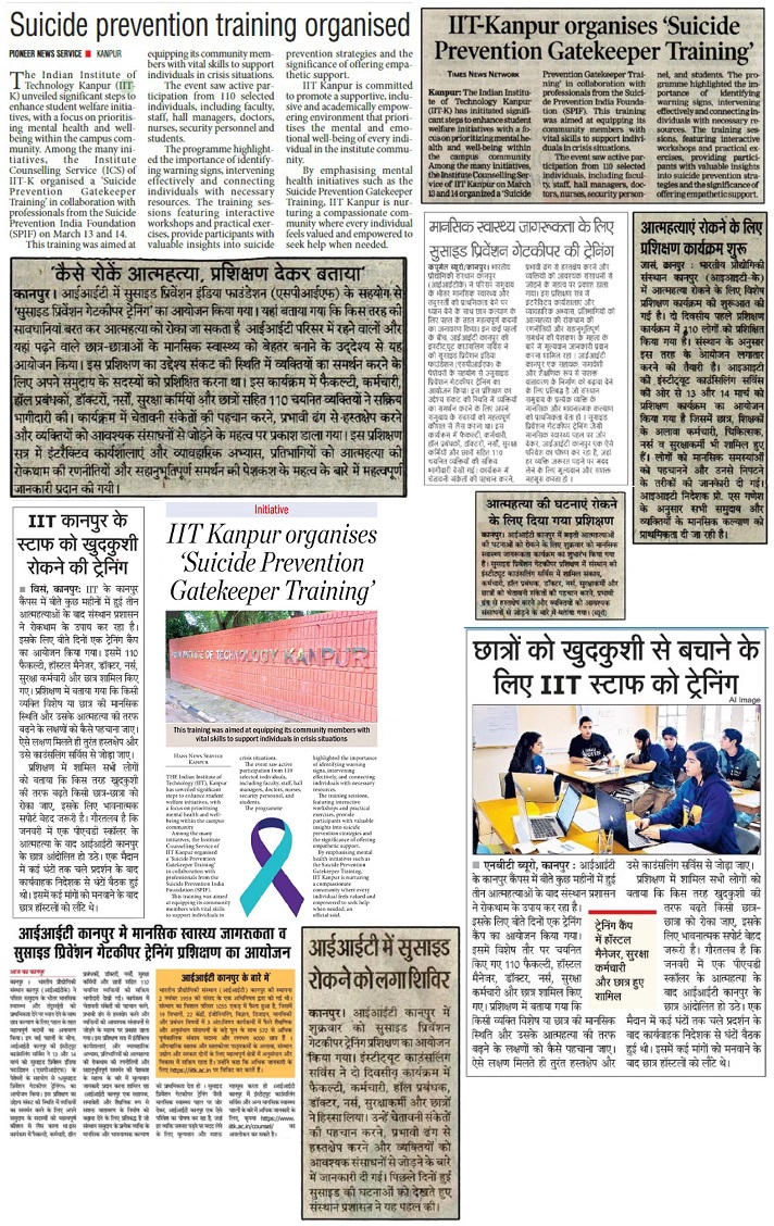 The Indian Institute of Technology (IIT Kanpur) counselling service organised a suicide prevention gatekeeper training’ in partnership with professionals from the Suicide Prevention India Foundation (SPIF) on March 13 and 14.