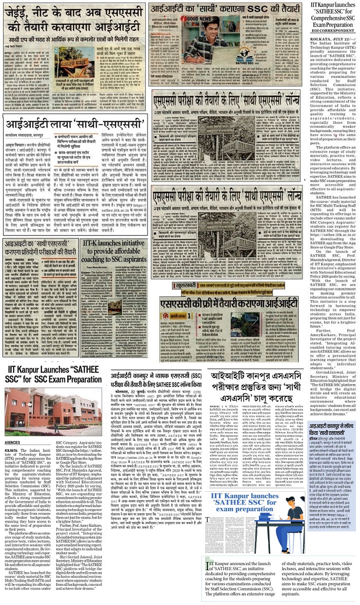 7 | 23 July 2024 | आईआईटी कानपुर ने व्यापक एसएससी परीक्षा की तैयारी के लिए SATHEE SSC लॉन्च (SSC) किया | Info India | Kolkata | 12 | Correspondent |