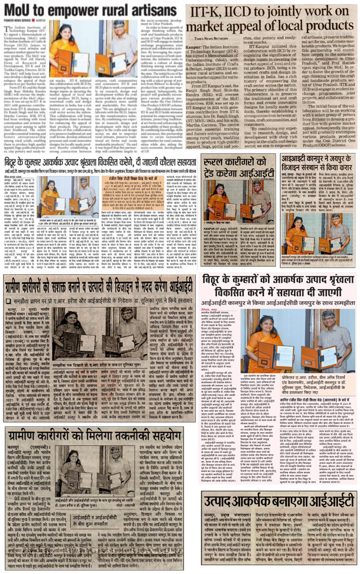 कारीगर डिजायन को समझकर बाजार की जरूरत के लिए तैयार होंगे उत्पाद, आईआईटी कानपुर और आईआईसीडी के साथ हुआ समझौता