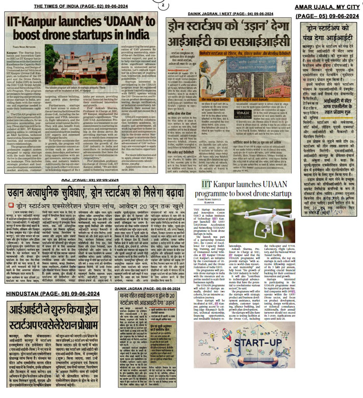 2 | 9 June 2024 | IIT-Kanpur launches 'UDAAN' to boost drone startups in India | The Times Of India | Kanpur | 2 | Correspondent |