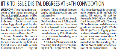 Indian Institute of Technology (IIT) Kanpur will be organzing its 54th Convocation on December 28, 2021 in a hybrid mode with Prime Minister Narendra Modi as the Chief Guest.