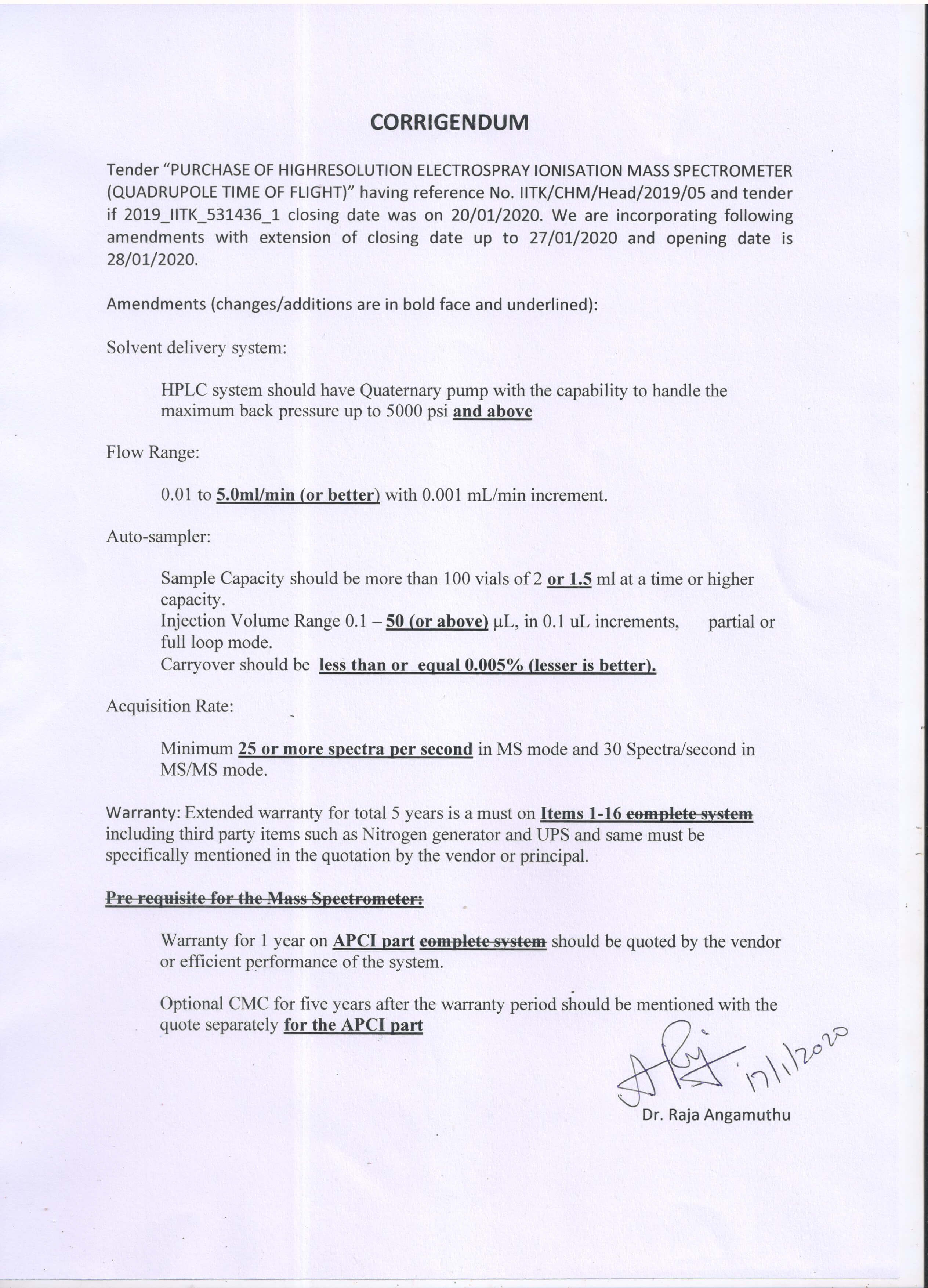 7364 Enquiry No: IITK/CHM/Head/2019/05 Department of Chemistry 30/12/2019 27/01/2020